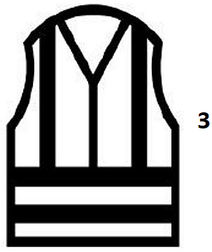 EN ISO 20471:2013+A1:2016 High visibility clothing. Clothing designed to provide protection in areas of low conspicuity (Class 1 indicates the lowest level of acceptance) High visibility protection for use in areas of low conspicuity for passive road users (EN ISO 20471 Class 1) where vehicle speed ≤ 30km/h.